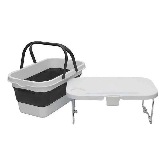 Sklopiva kamperska piknik košara s poklopcem 2u1 bijela/siva