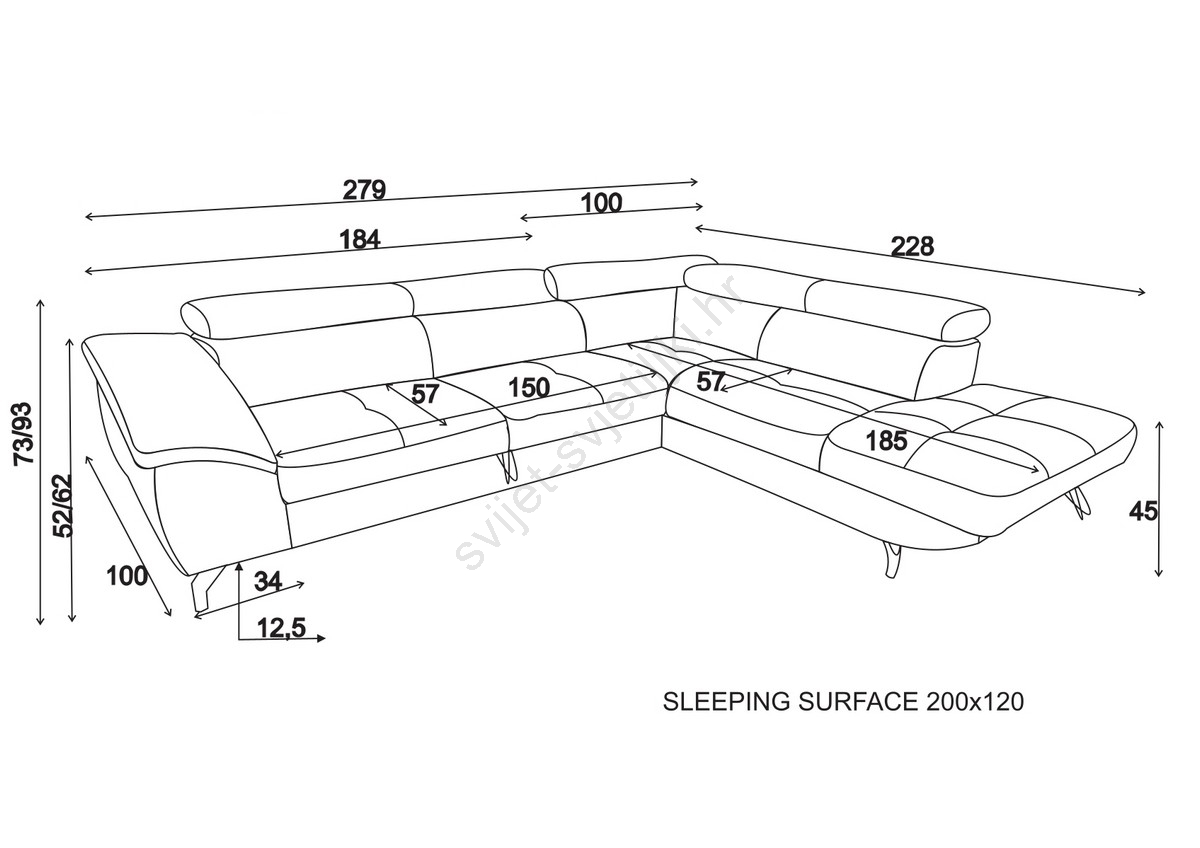 • Trosjed je opremljen izuzetno velikim spremištem koje pruža dovoljno prostora za deke, jastuke i druge potrepštine.