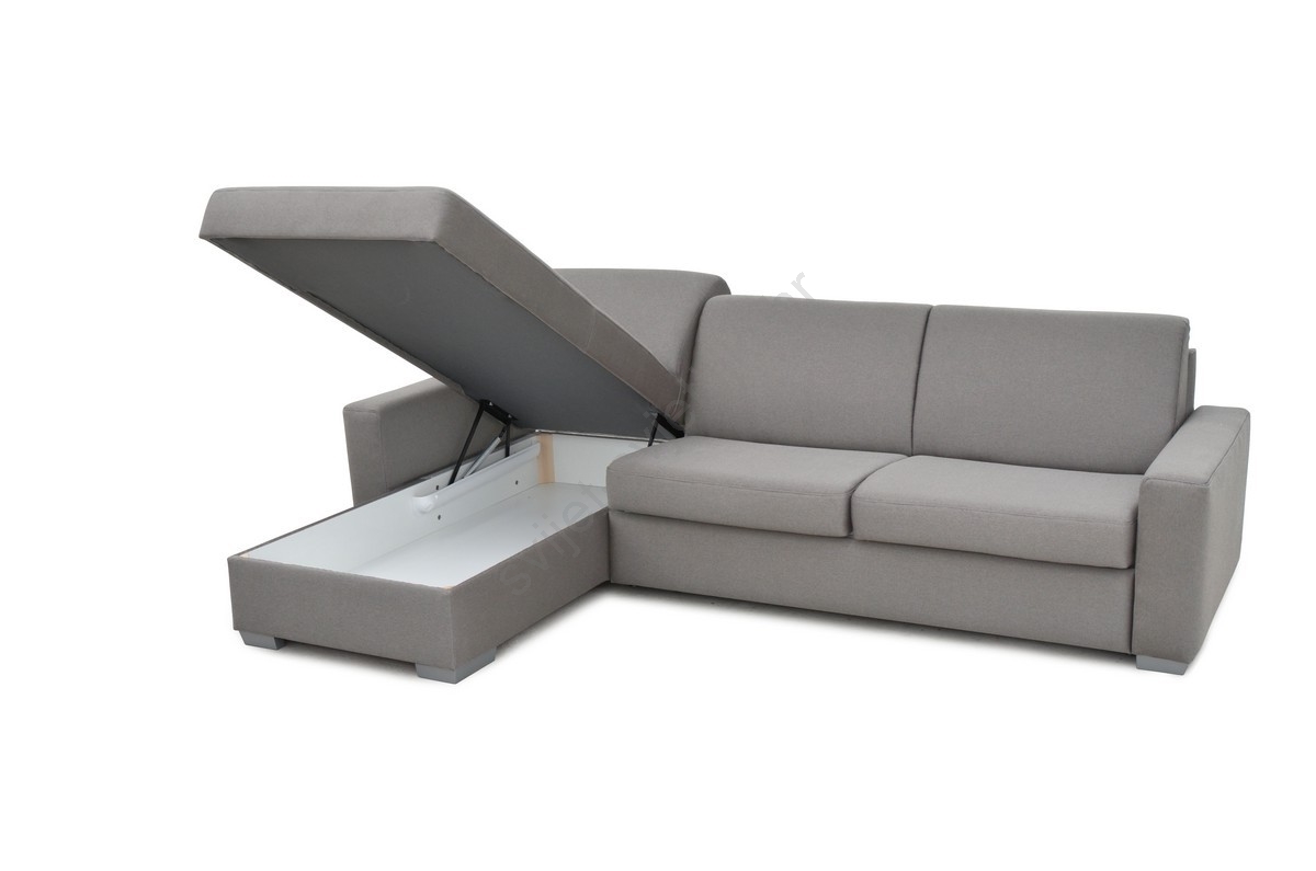 Razvlačna kutna garnitura za svakodnevno spavanje s prostorom za pohranu u obliku slova L LEKA lijeva siva