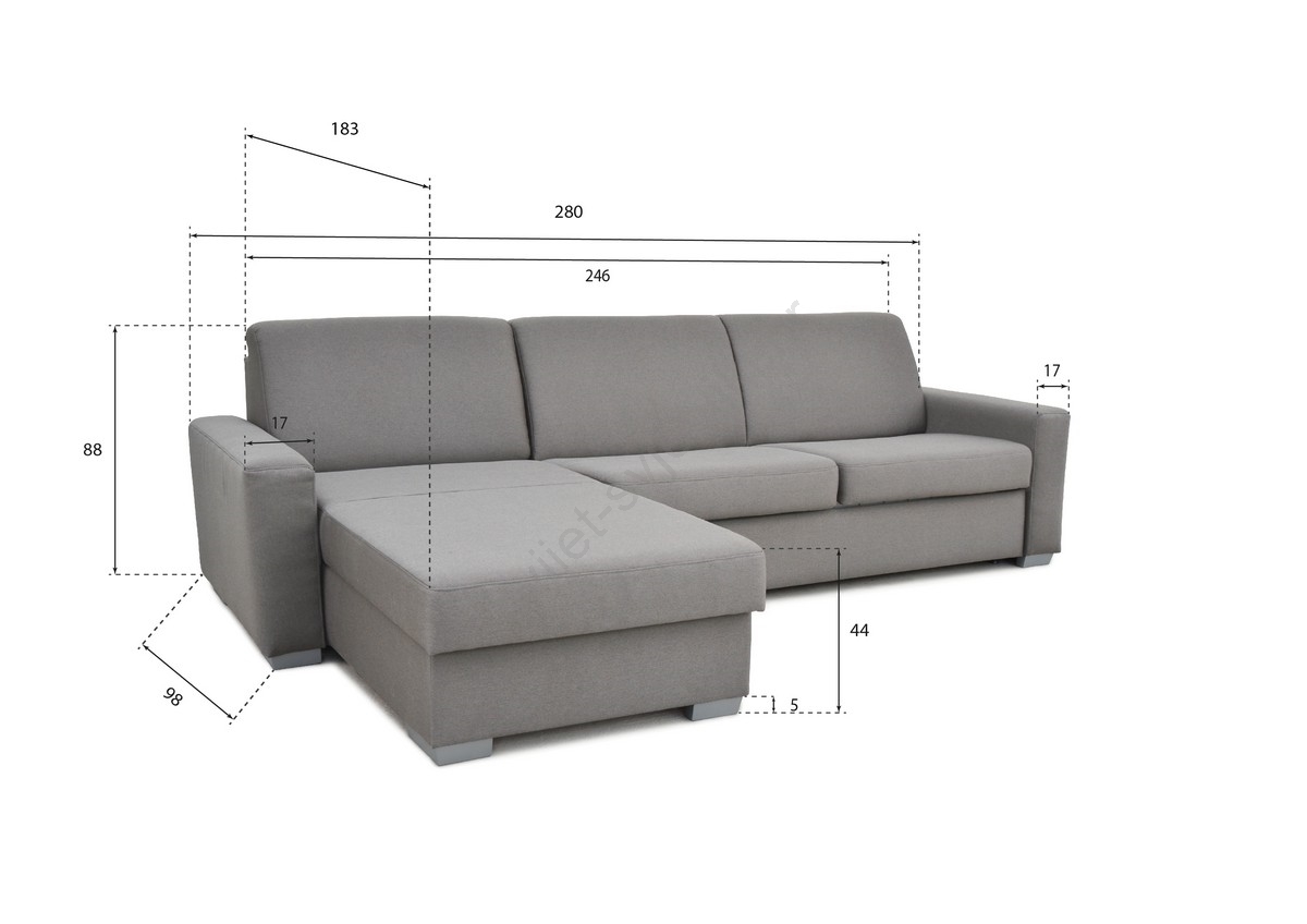 • Razvlačna kutna garnitura za svakodnevno spavanje s prostorom za pohranu u obliku slova L LEKA desna siva