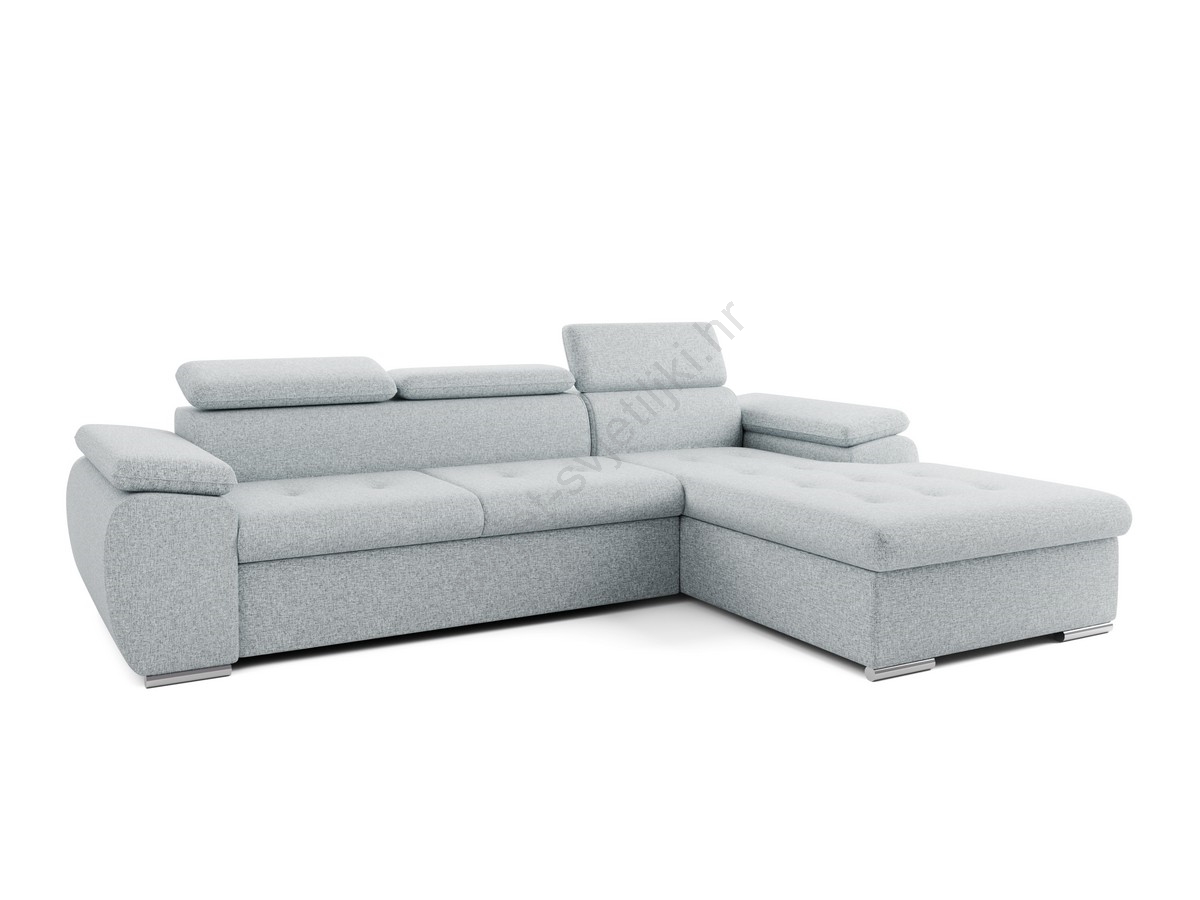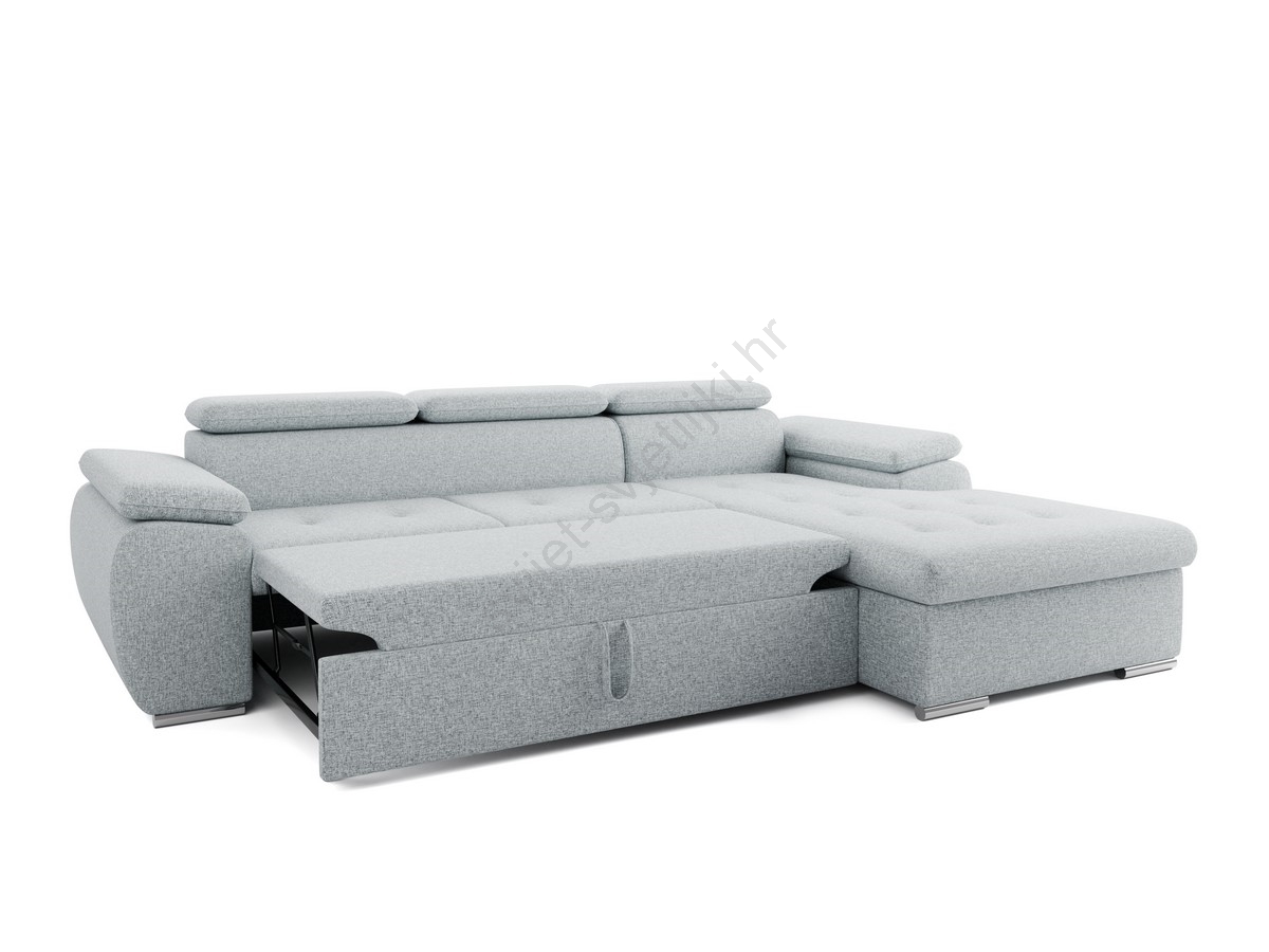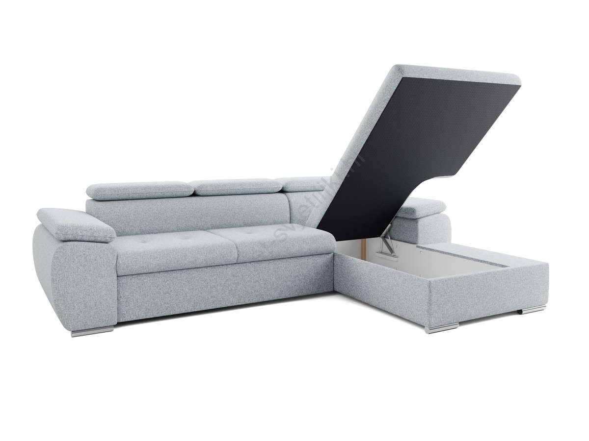 • Razvlačna kutna sjedeća garnitura u obliku slova L s spremištem PADUA siva desna