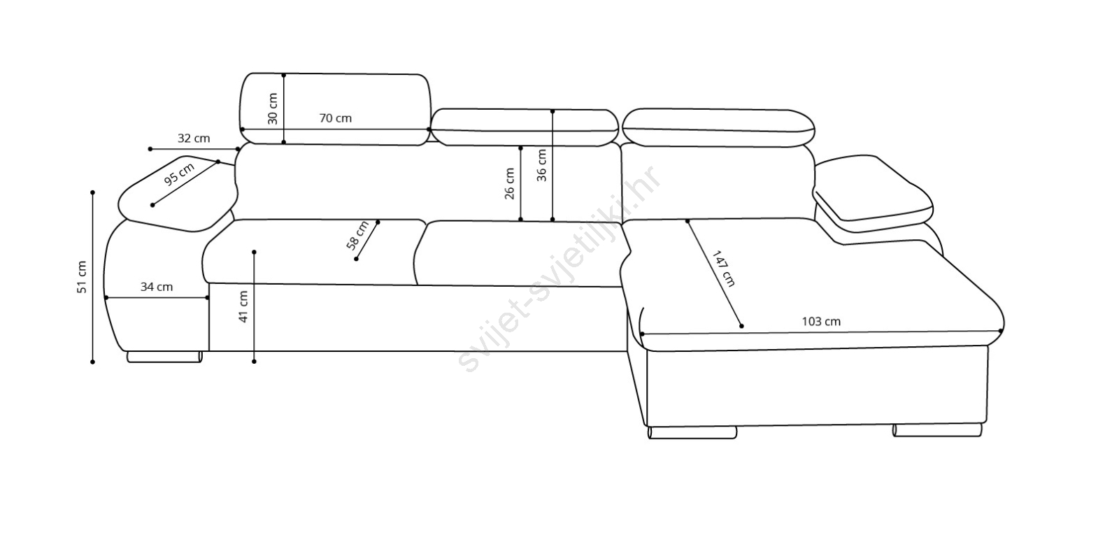 • Razvlačna kutna garnitura u obliku slova L predstavlja kombinaciju udobnosti, praktičnosti i funkcionalnosti.