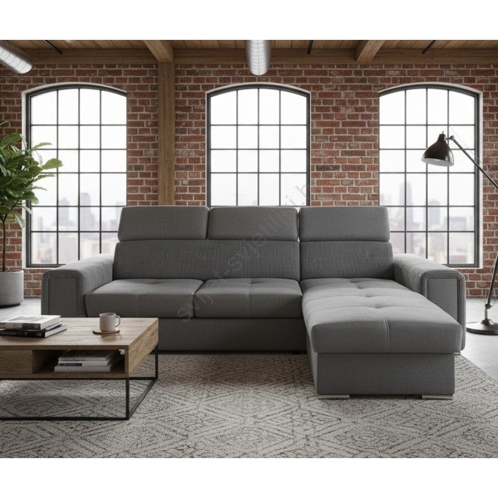 • Univerzalna kutna razvlačna garnitura u obliku slova L s spremištem SALVADA tamno siva
