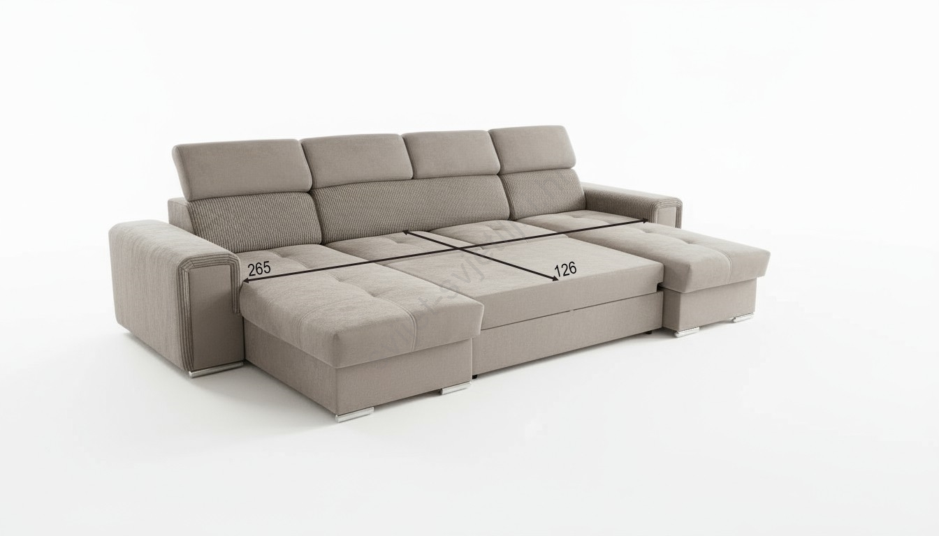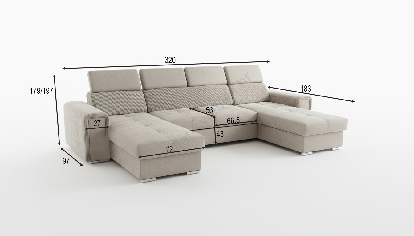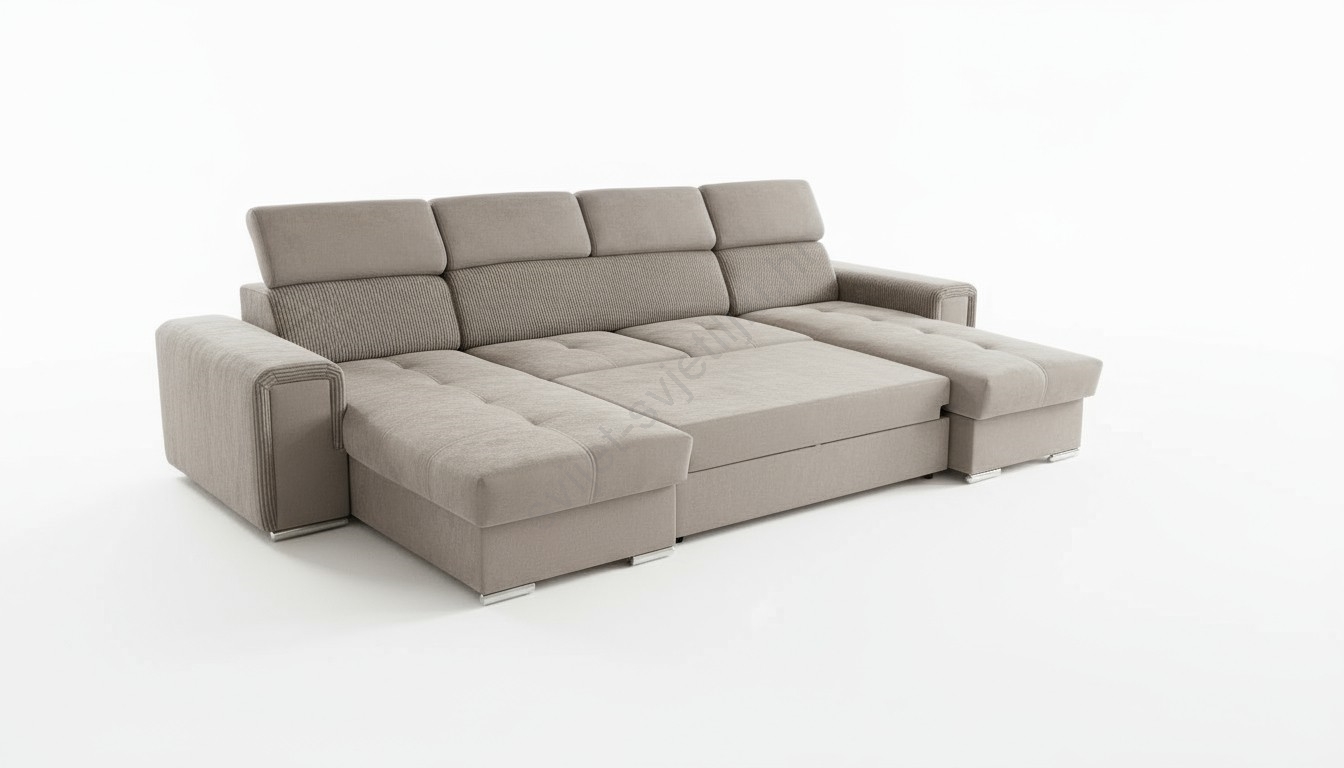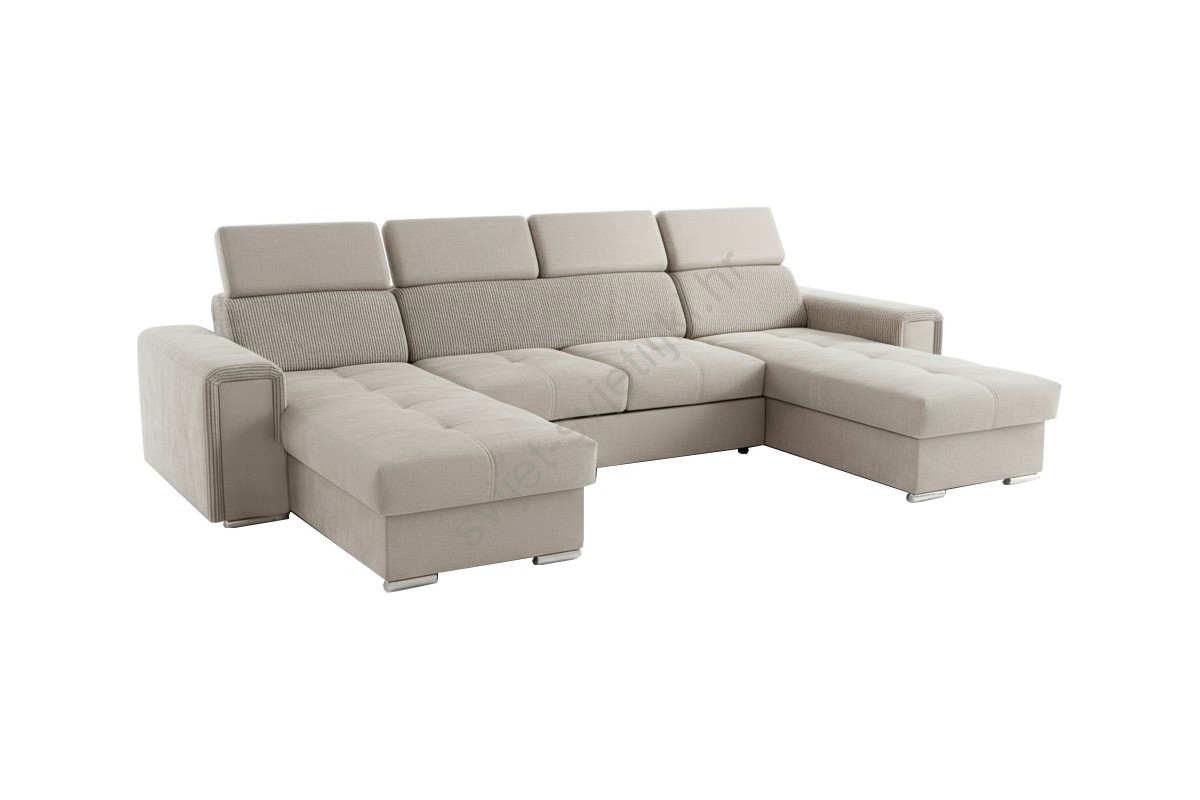 • Razvlačna kutna garnitura SALVADA s univerzalnim U-kutom i praktičnim spremištem, bež