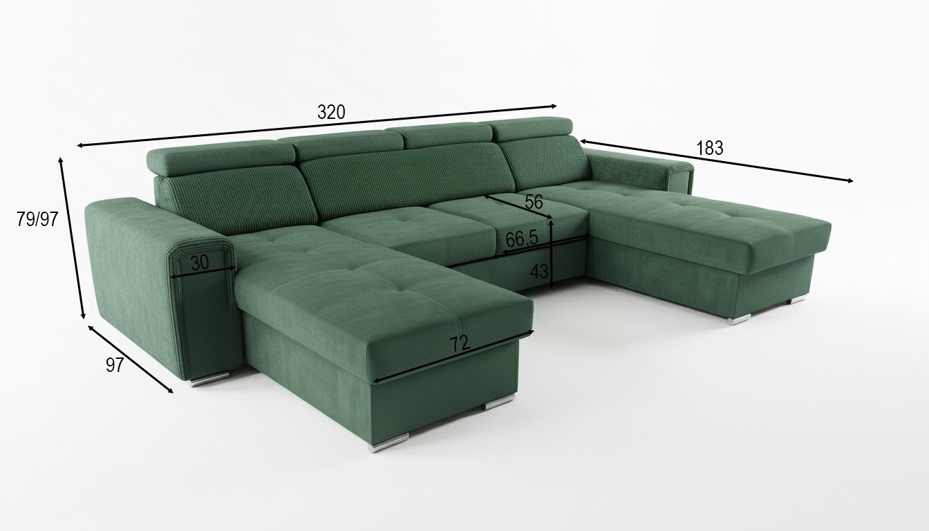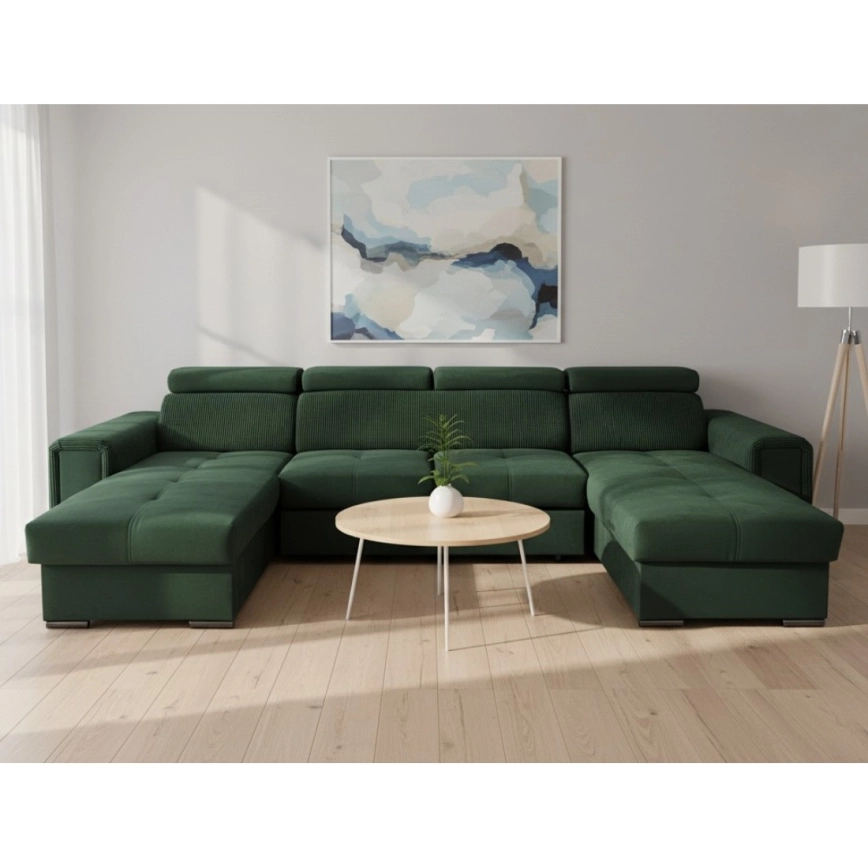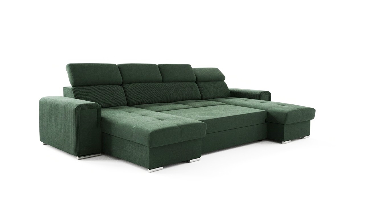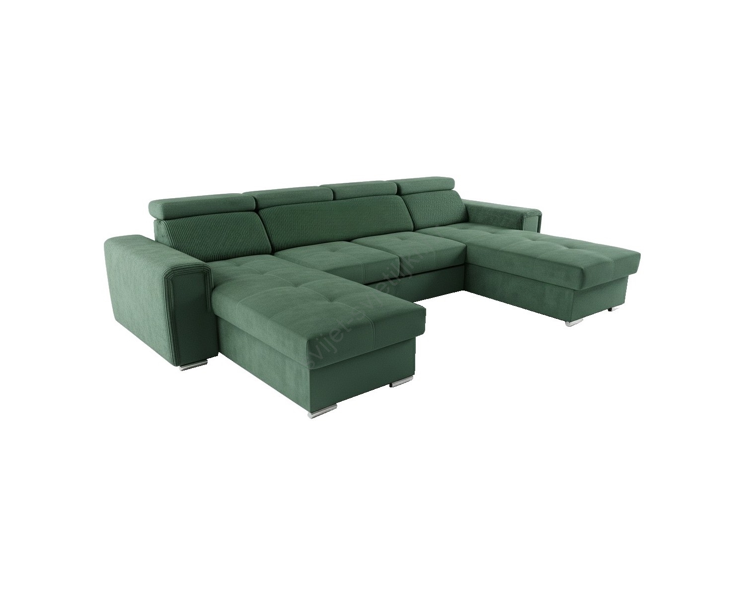 Razvlačna kutna garnitura u obliku slova U s univerzalnim kutom i spremištem SALVADA zelena