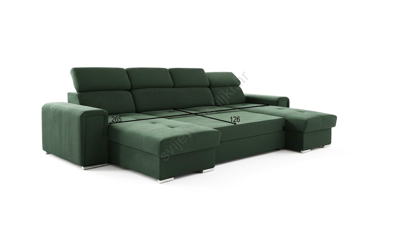 • Prostrani kutni trosjed u obliku slova U idealan je za svakodnevno spavanje i nudi udobnost uz moderan dizajn.