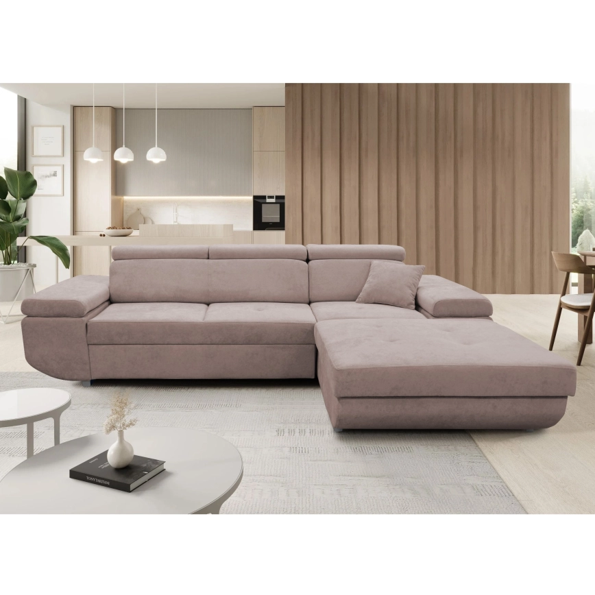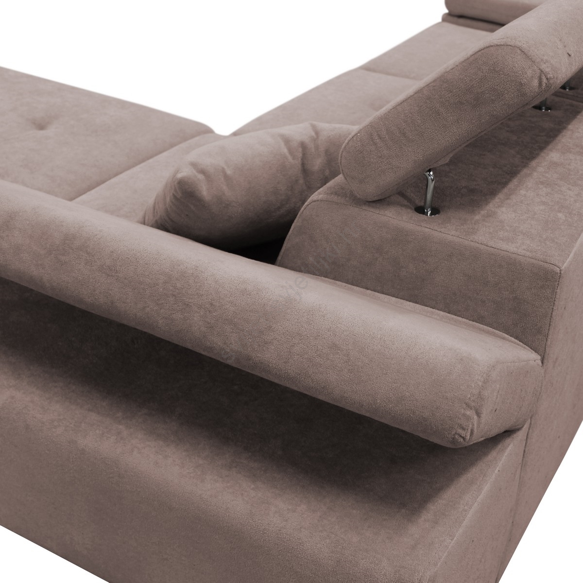 • Razvlačna kutna sjedeća garnitura CASTELO u obliku slova L, s prostranim spremištem, s kutom na lijevoj strani, bež
