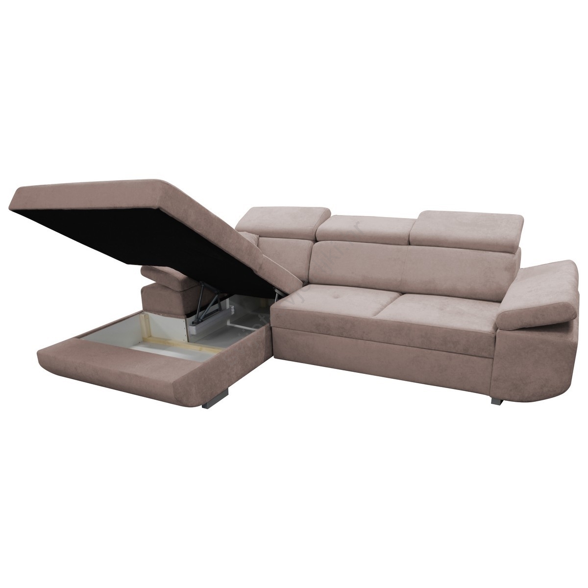 • Razvlačna kutna sjedeća garnitura CASTELO u obliku slova L, s prostranim spremištem, s kutom na lijevoj strani, bež