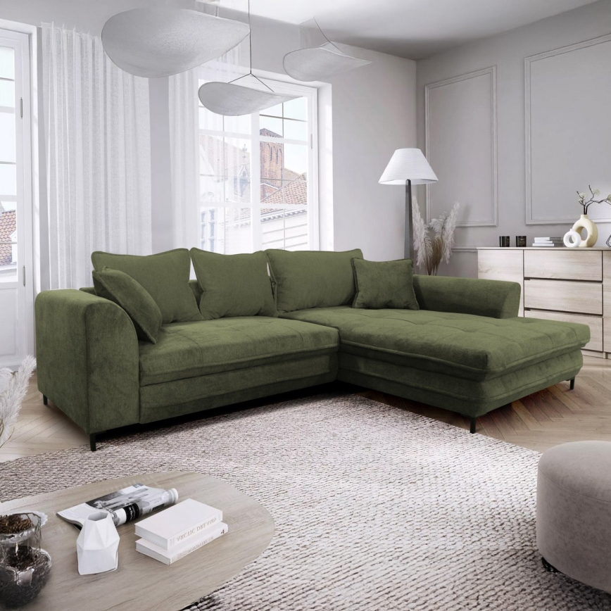 • Razvlačna kutna garnitura s spremištem u L-obliku LAGOA, desna, zelena