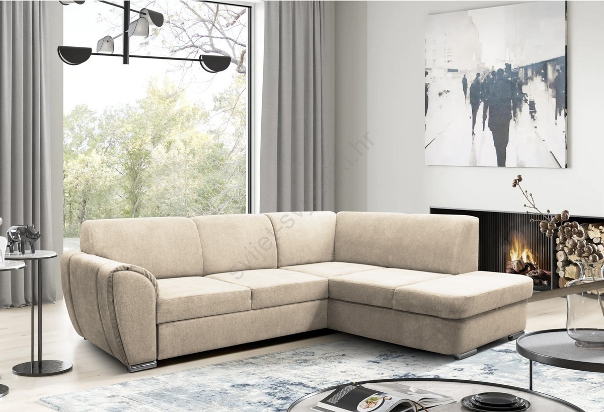 • Ugaona garnitura na razvlačenje s prostorom za pohranu u obliku slova L SERPA lijeva bež