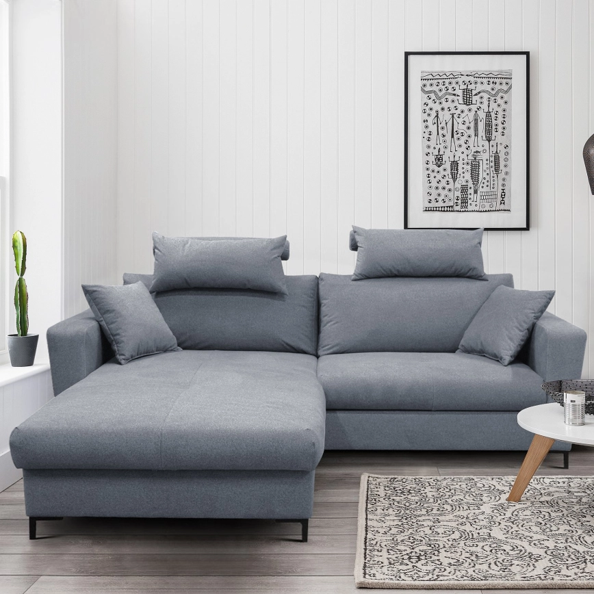 • Razvlačna kutna garnitura s spremištem u obliku L HORTA, lijeva, siva