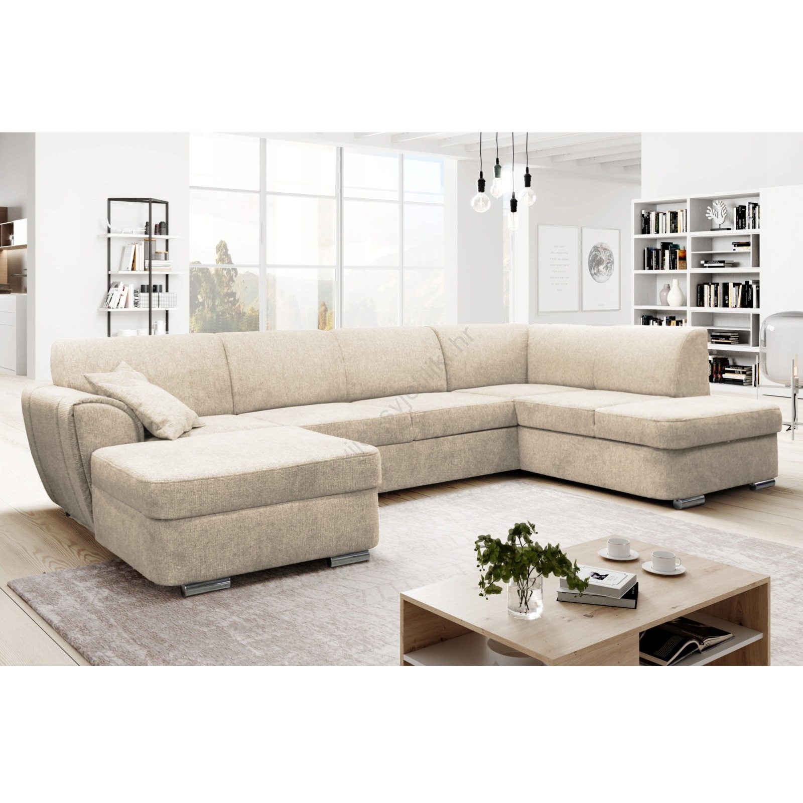 Razvlačna kutna garnitura SERPA u U-obliku s prostorom za pohranu, desna, bež