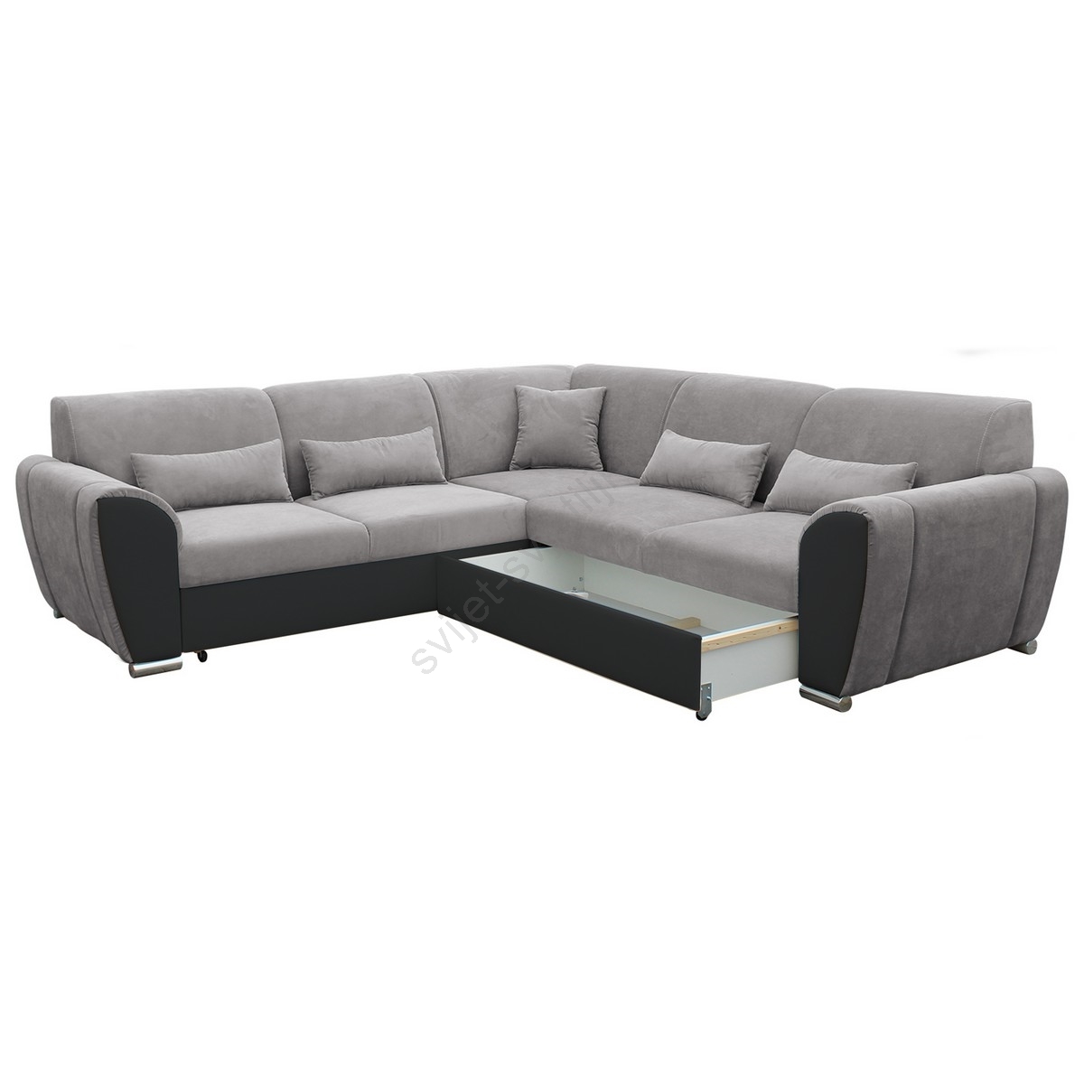• Razvlačna kutna garnitura s spremištem u obliku slova L VISEU, desna, siva/bijela