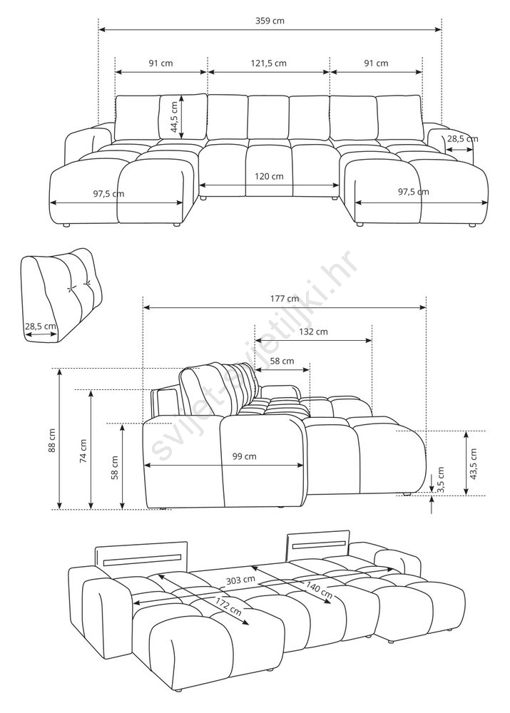 • Garnitura ima prostrani prostor za pohranu za spremanje posteljine i drugih sezonskih predmeta.