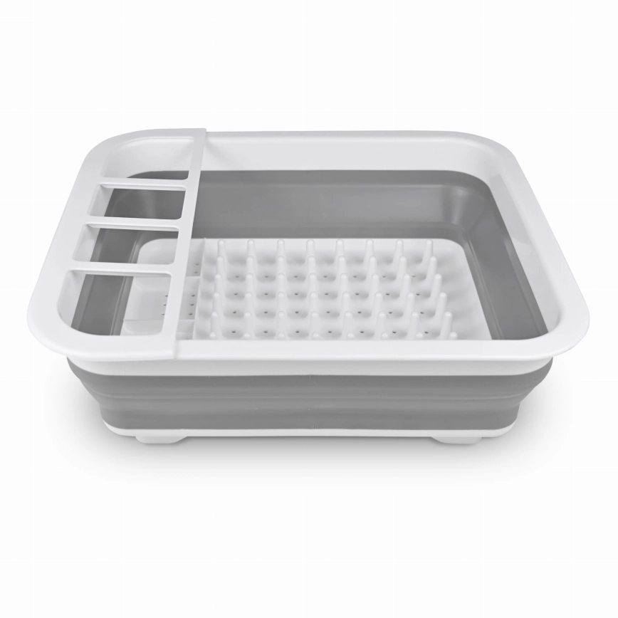 • Sklopivi silikonski ocjeđivač za posuđe praktičan je pomoćnik za sušenje posuđa, čaša i pribora za jelo — idealan za manje kuhinje, stanove, karavane ili vikendice.