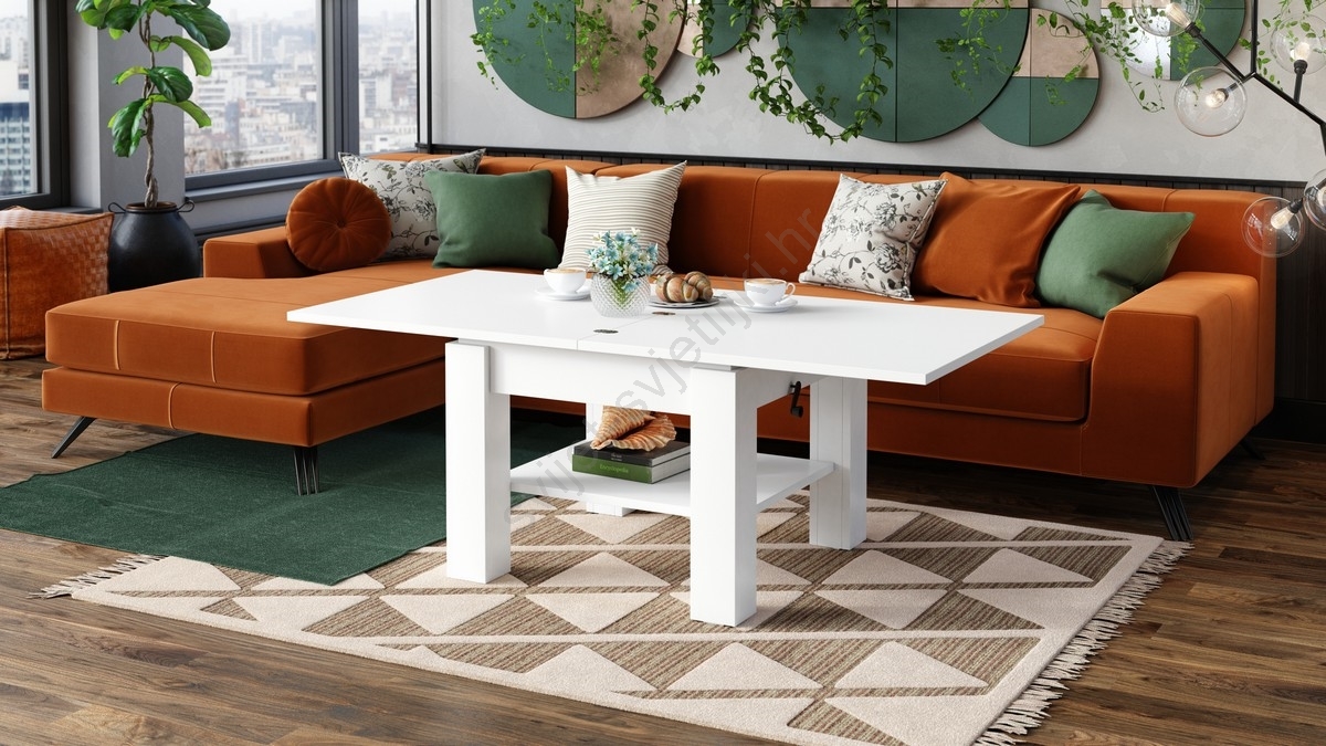• Razvlačni konferencijski/jelovnički stol s podiznom pločom CALEB bijeli