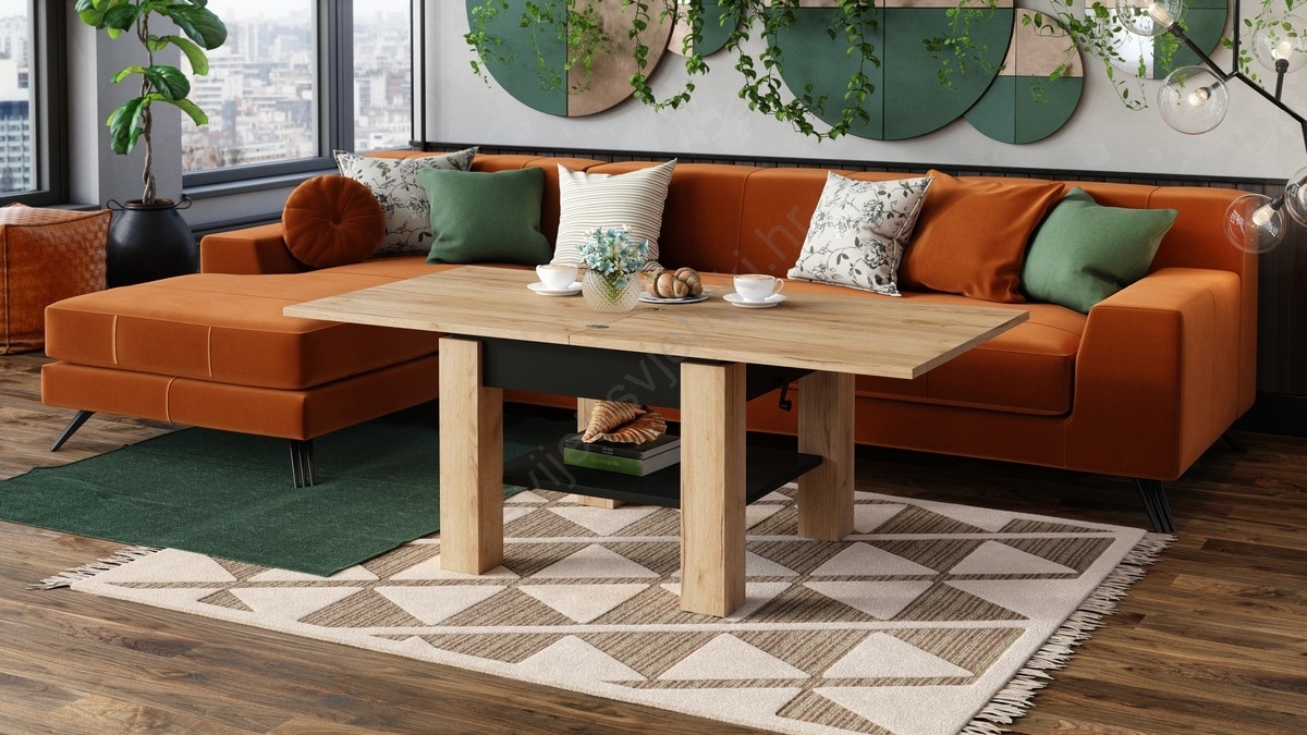 • Proširivi konferencijski stol s podiznom pločom CALEB 75/150x75 cm hrast craft/crna