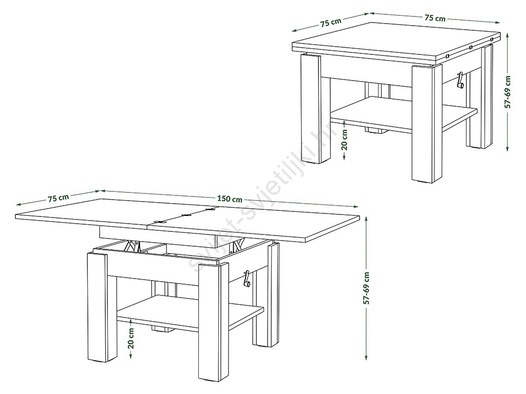 • Dimenzije rasklopljenog stola: 150x75 cm.