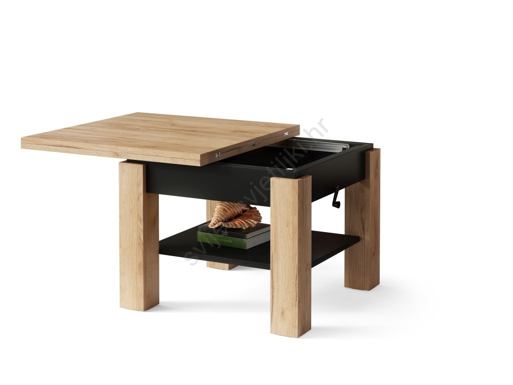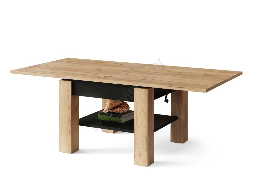 Razvlačni konferencijski/blagovaonski stol s podiznom pločom CALEB hrast craft/crna