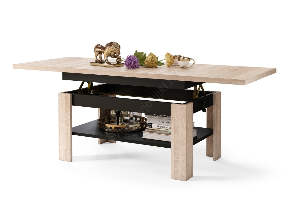 Razvlačivi konferencijski/blagovaonski stol s podiznom pločom ROY hrast Sonoma/crna