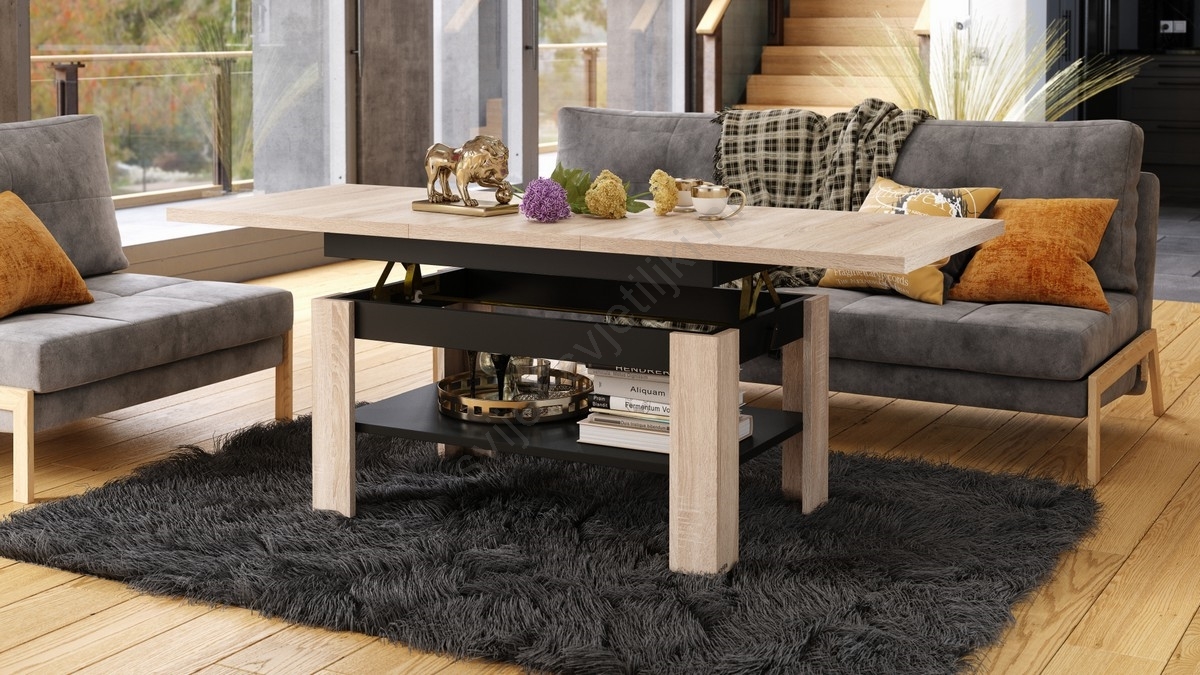 Razvlačivi konferencijski stol s podiznom pločom ROY 130/170x65 cm hrast sonoma/crna