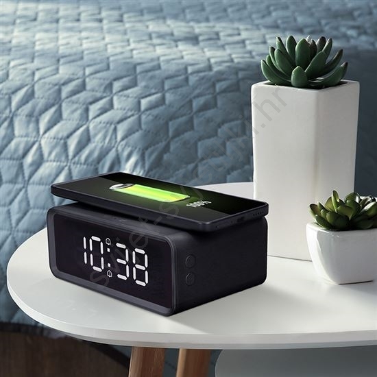 Digitalni sat s Qi bežičnim punjačem 230V/CR2032 crni