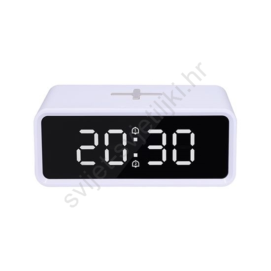 Digitalni sat s Qi bežičnim punjačem 230V/CR2032, bijeli