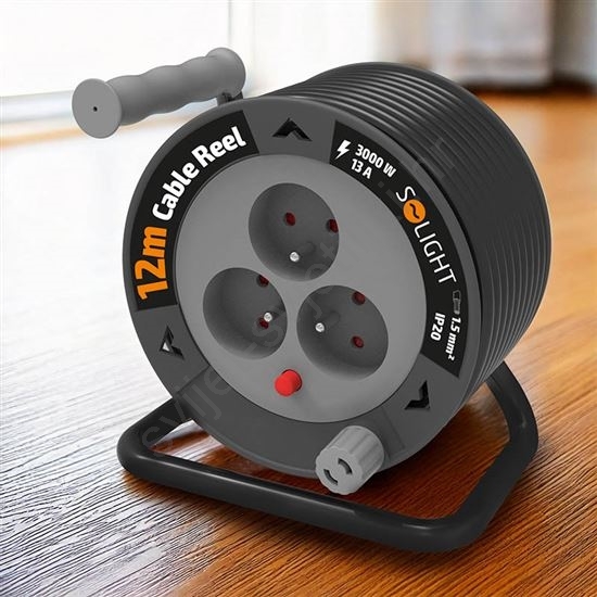 Produžni kabel na kolutu s 3 utičnicama, 12 m