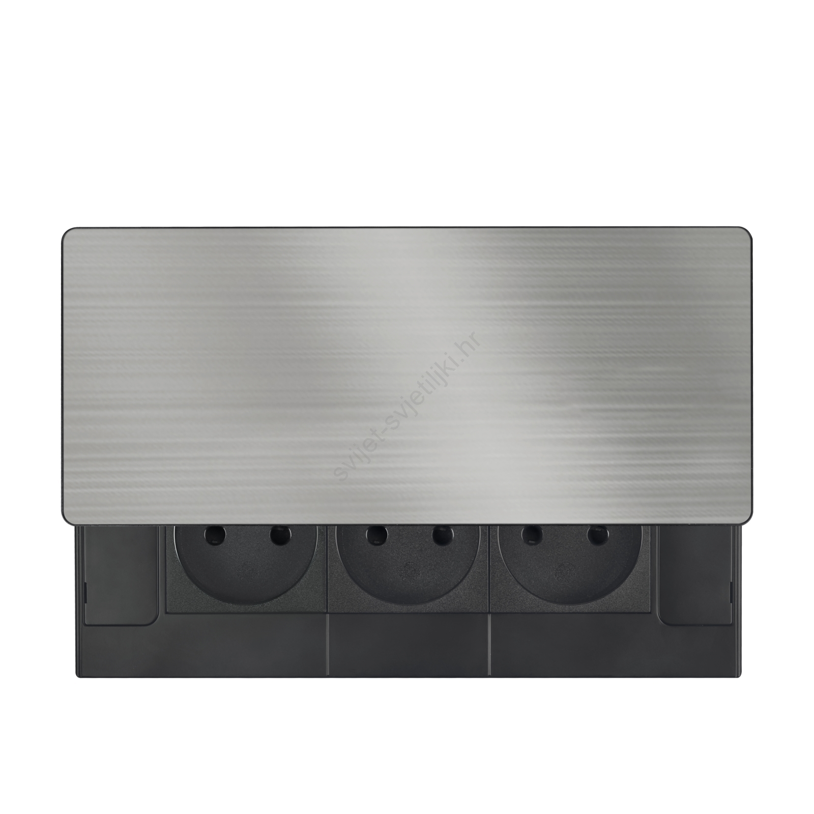 • Gornji poklopac je od matnog tamnog nehrđajućeg čelika (inox) i ima klizni mehanizam koji štiti utičnice od prašine i nečistoća.