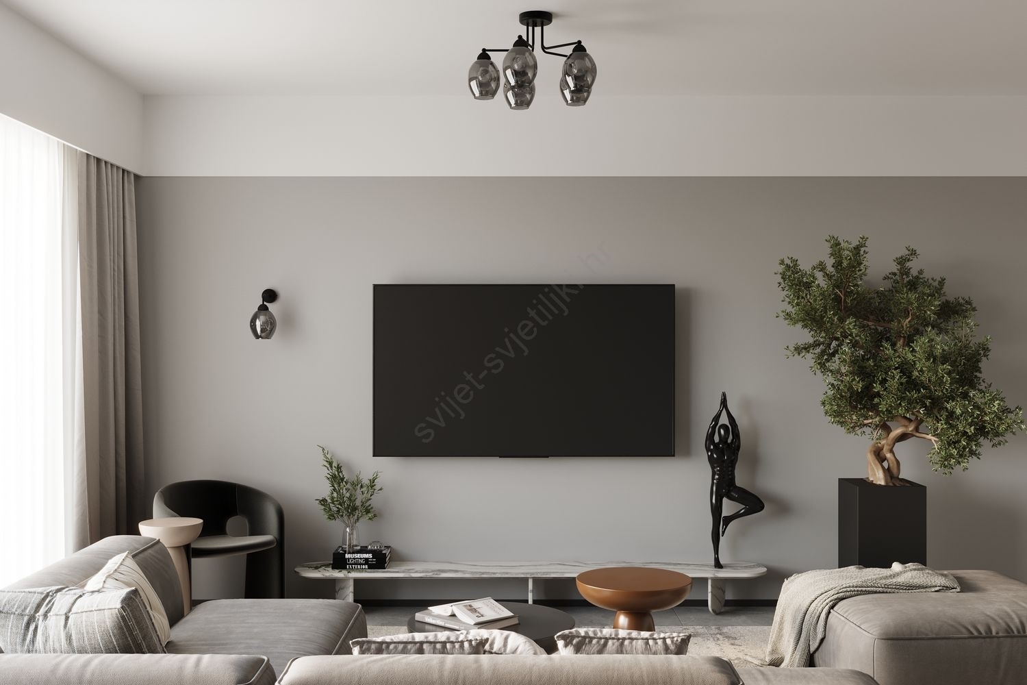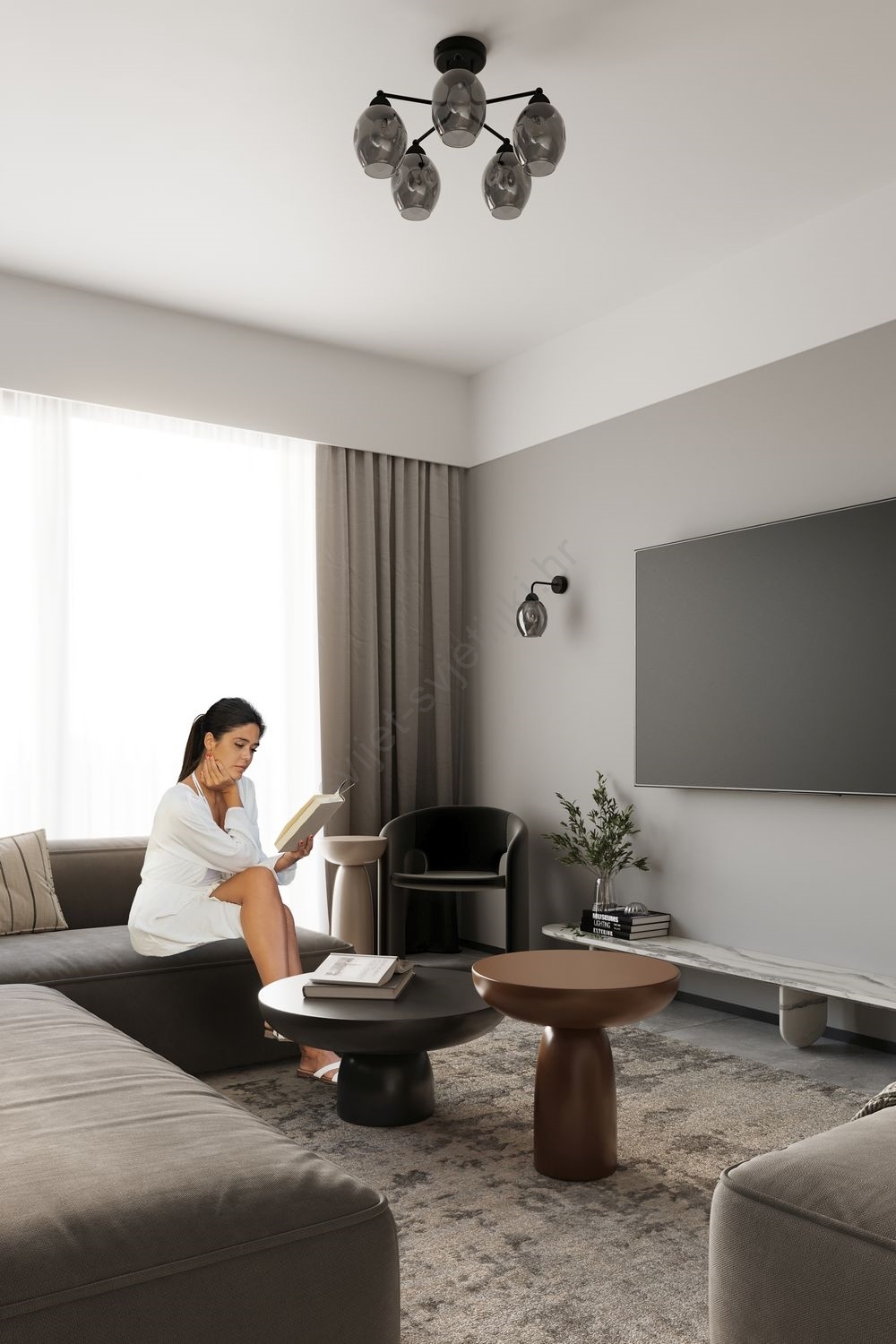 Dnevni boravak i spavaonica, Lusteri, Prostorije, Svjetiljke, Unutarnja rasvjeta