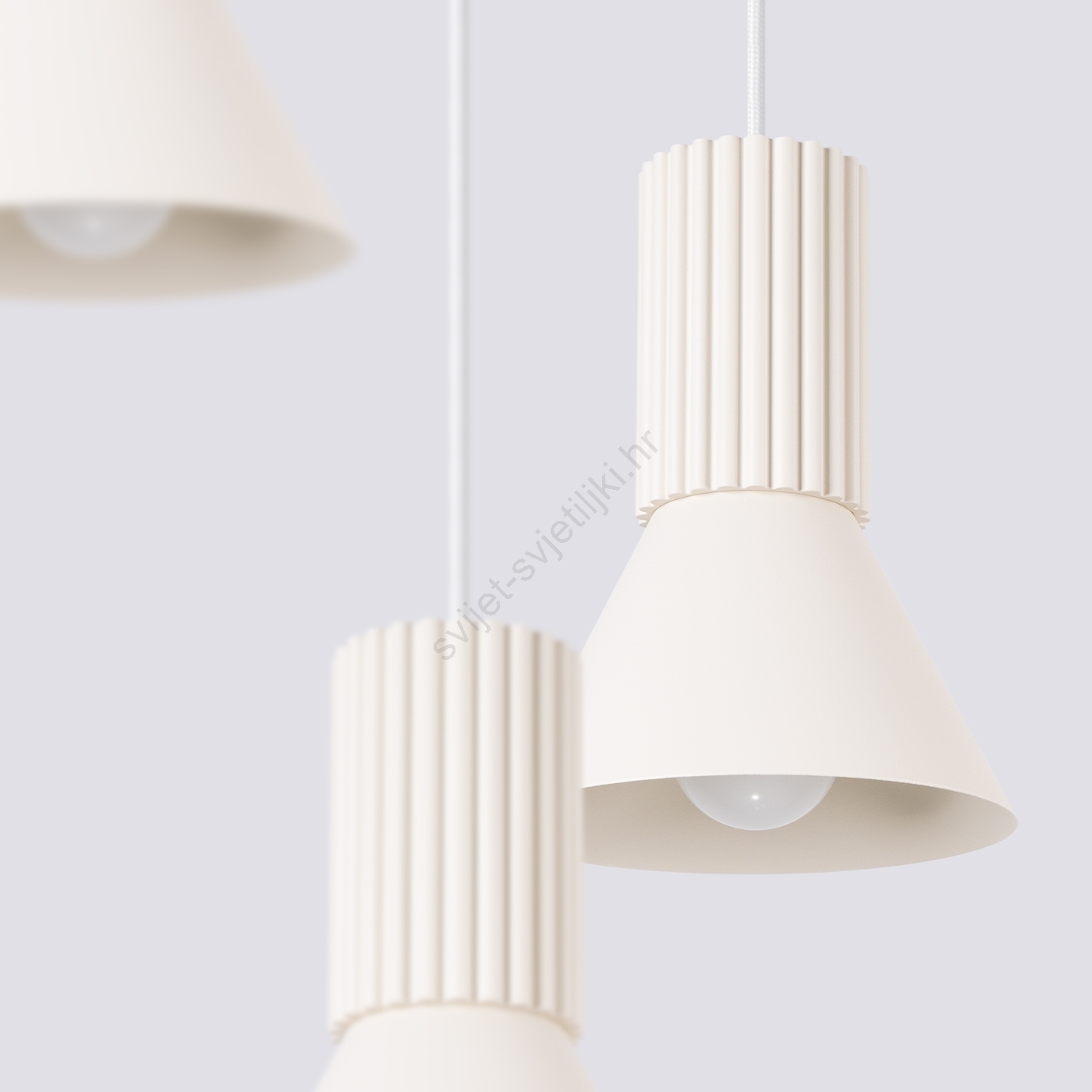 Luster na sajli ESTRIA 3xE14/10W/230V Ø 30 cm krem karakterizira lijep i funkcionalan dizajn. Za svjetiljku je prikladna žarulja s bazom E14. Ovdje možete kupiti i druge žarulje po povoljnim cijenama. Bit će zanimljiv dodatak Vašem domu.