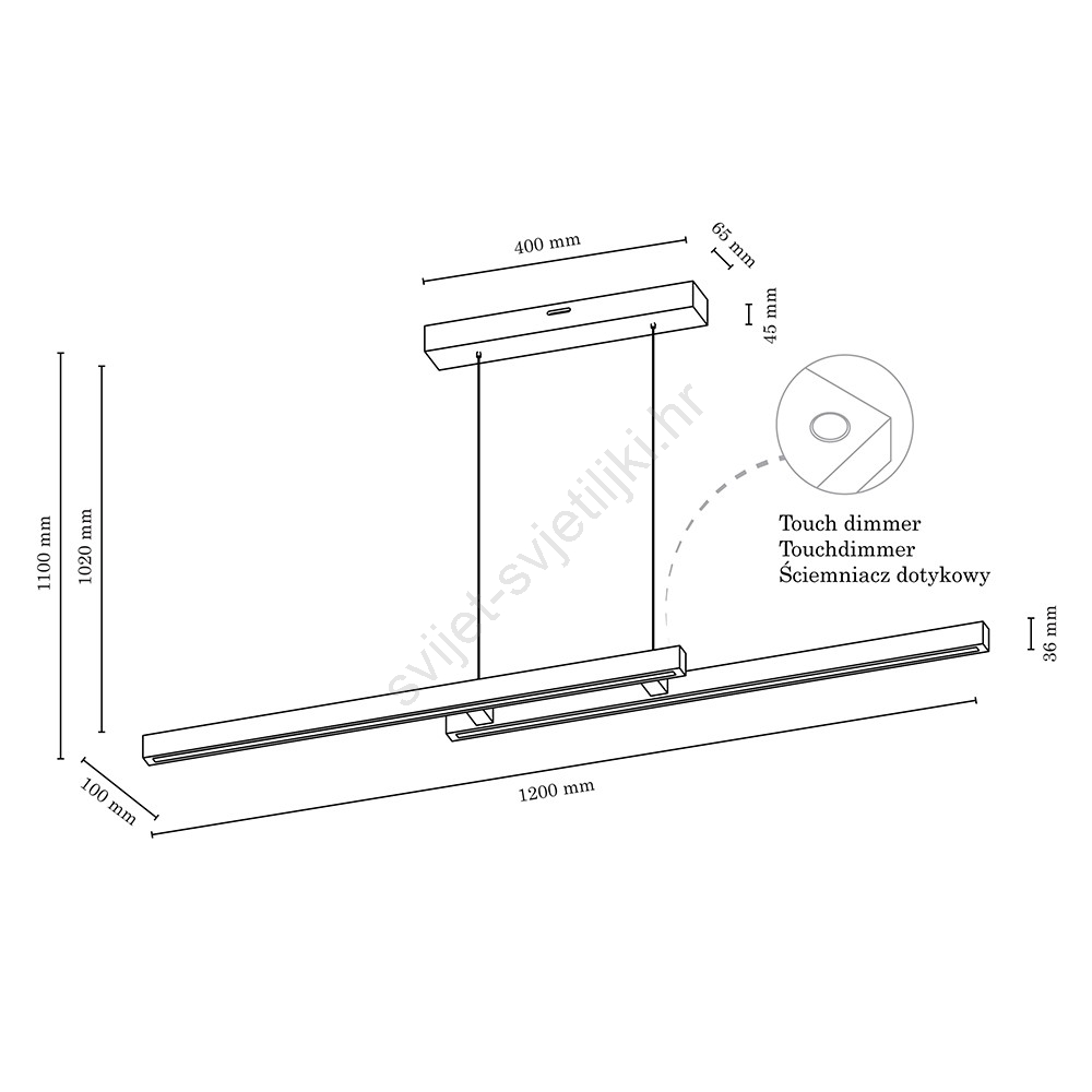LED luster s prigušivanjem na sajli SMAL 2xLED/22,5W/230V 2700/4000/6500K hrast