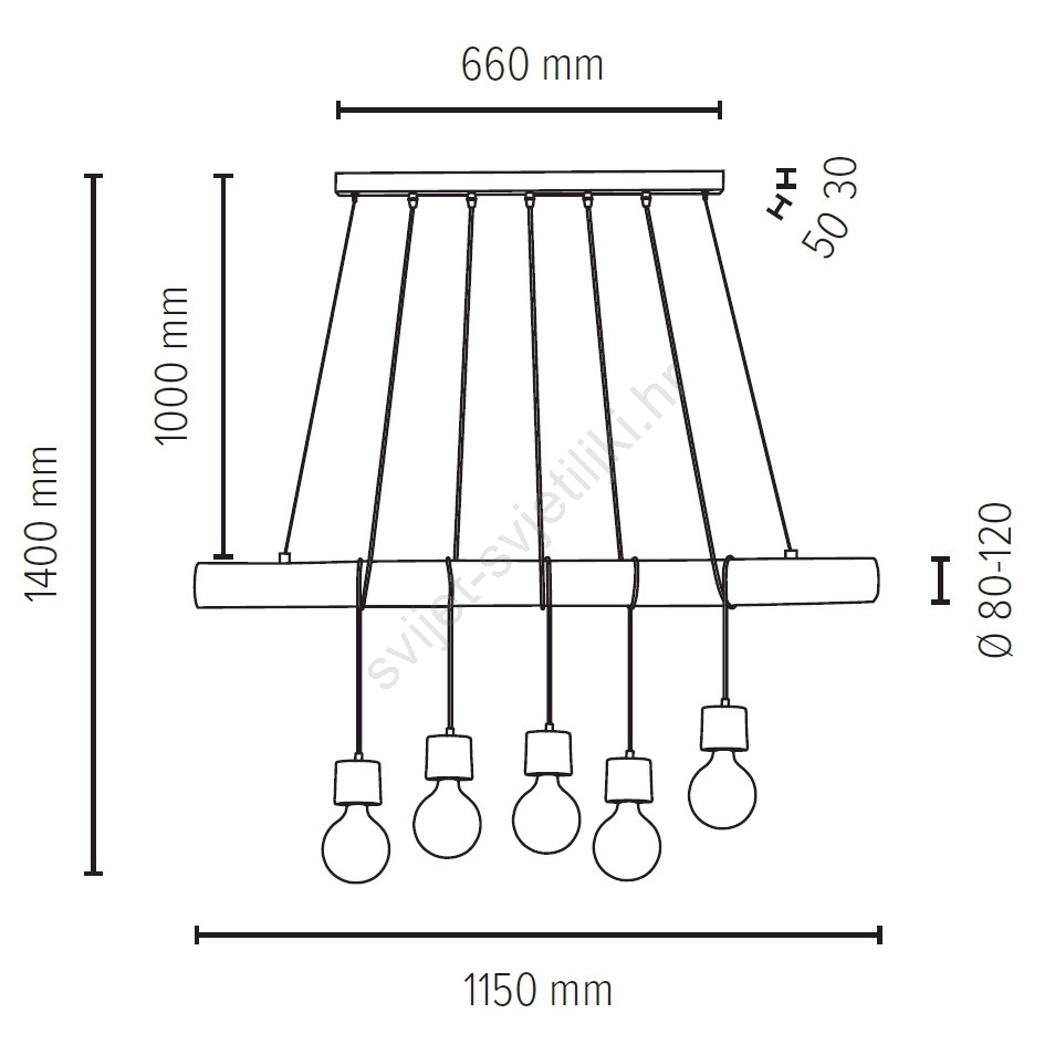 Luster na užetu TRABO 5xE27/60W/230V borovina