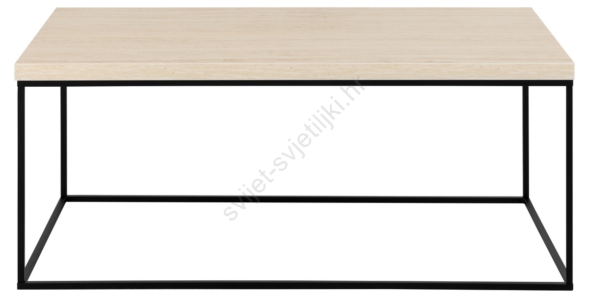 • Ploča u izgledu travertina s grubim melaminskim premazom, podnožje od mat crne, grubo praškasto lakirane čelične konstrukcije.
