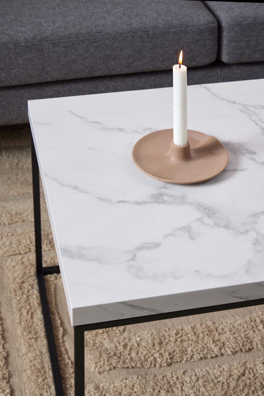 • Ploča od bijelog Carrara mramora s grubim melaminom, baza od mat crne, grube, praškasto lakirane čelične konstrukcije.