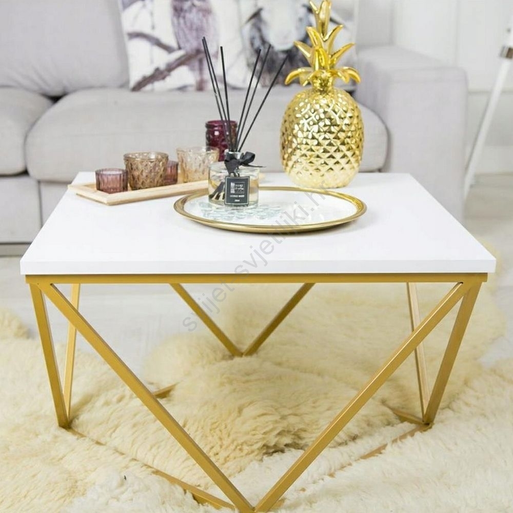 Stolić za kavu CURVED 62x62 cm zlatna/bijela