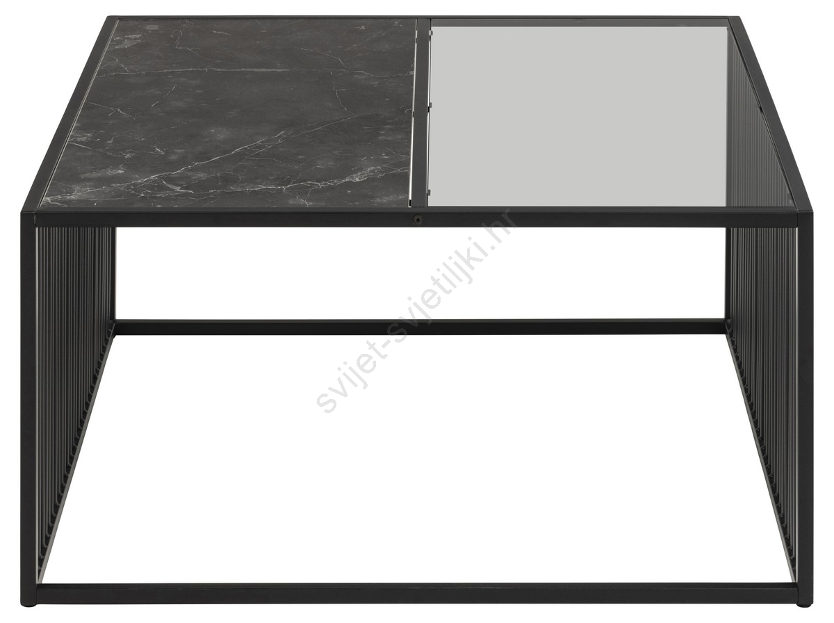 • Gornja mat crna Izmir gruba melaminska ploča i dimljeno kaljeno staklo, baza mat crna grubo praškasto lakirani čelik s otvorenim pretincem.