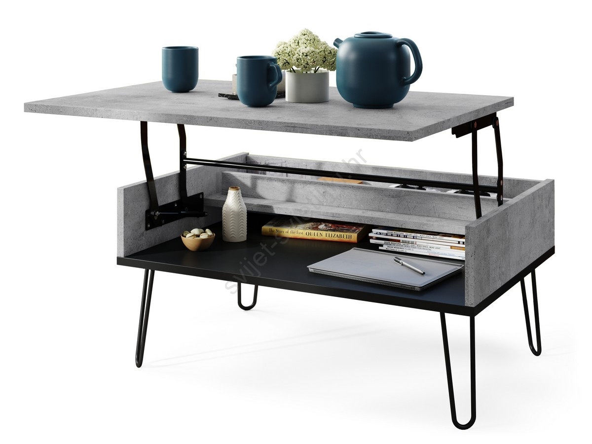 • Stolić za kavu s podiznom pločom i policom HALIJA, betonsko-siva/crna