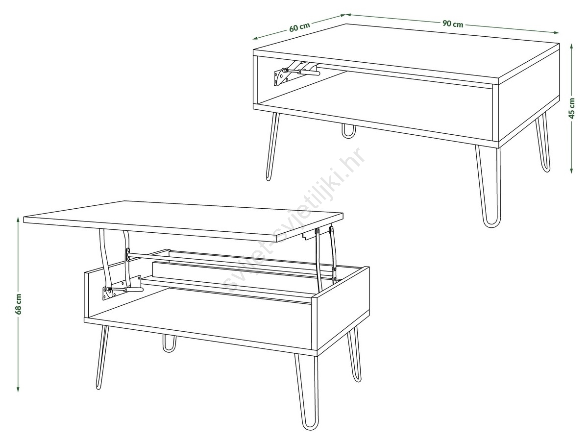 • Stolić za kavu s podiznom pločom i policom HALIJA bijela/crna