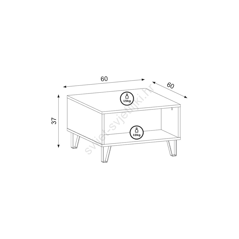 • Ima otvorenu policu u koju možete spremiti svoje knjige i sitnice.