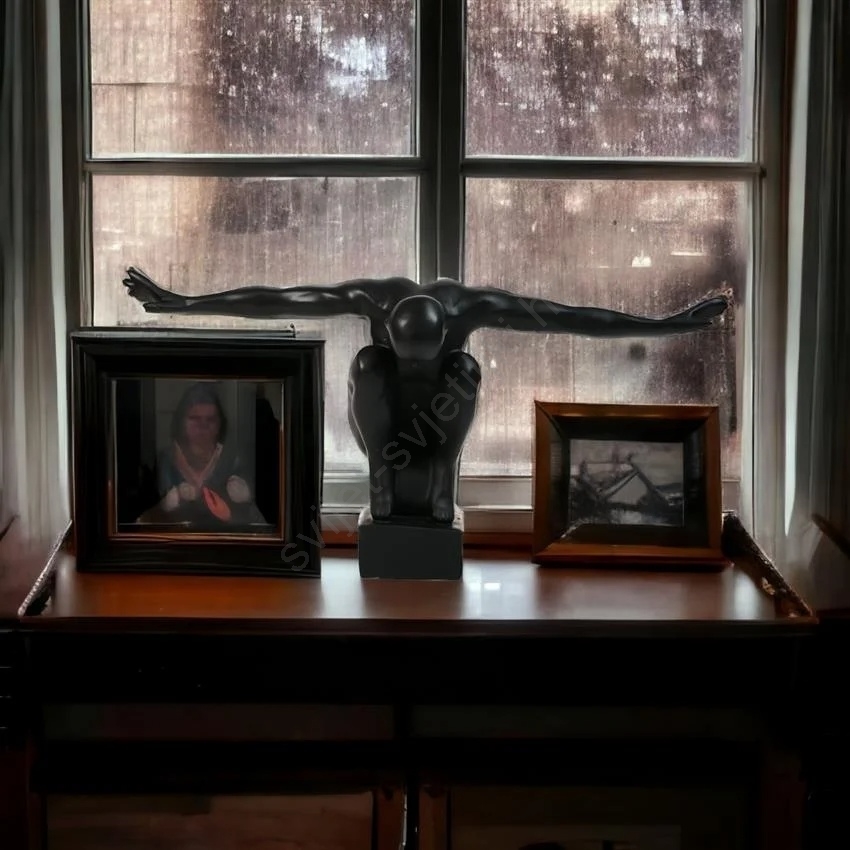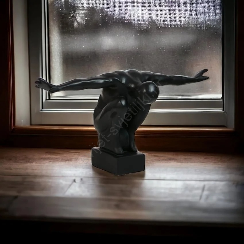 • Elegantna i minimalistička crna ukrasna figura s raširenim rukama.