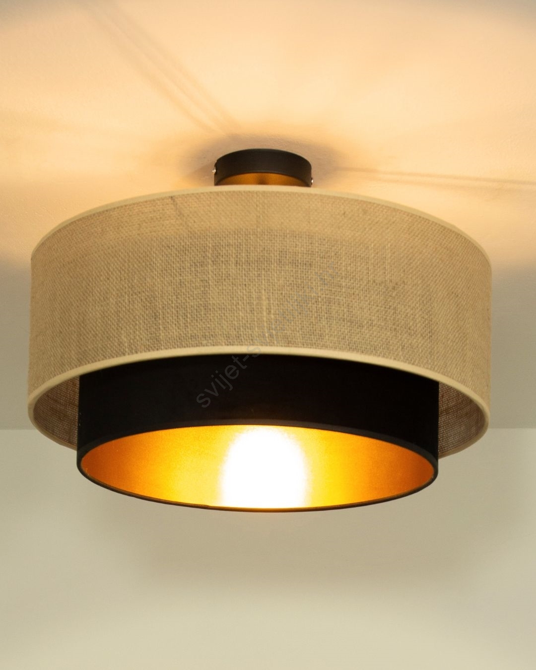 Plafonski luster SARTA 1xE27/60W/230V Ø 45 cm crna/juta karakterizira lijep i funkcionalan dizajn. Za svjetiljku je prikladna žarulja s bazom E27. Ovdje možete kupiti i druge žarulje po povoljnim cijenama. Bit će zanimljiv dodatak Vašem domu.