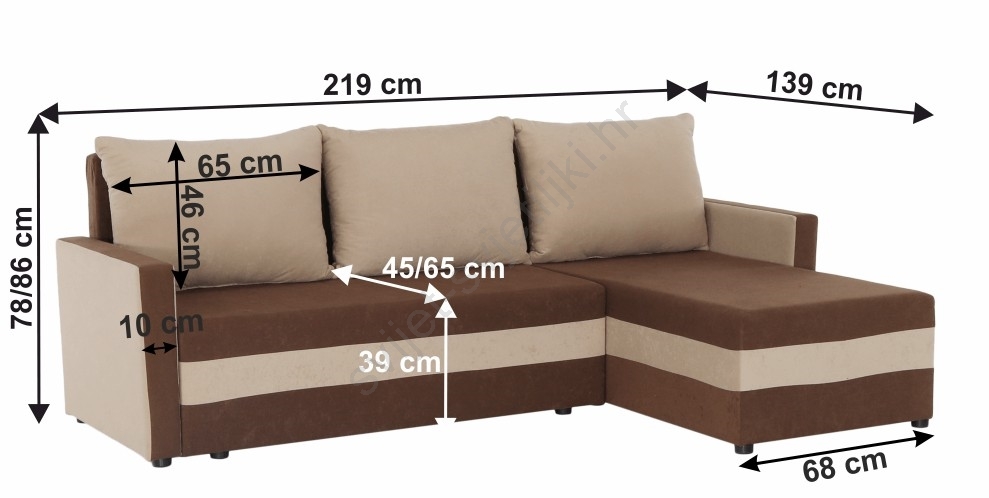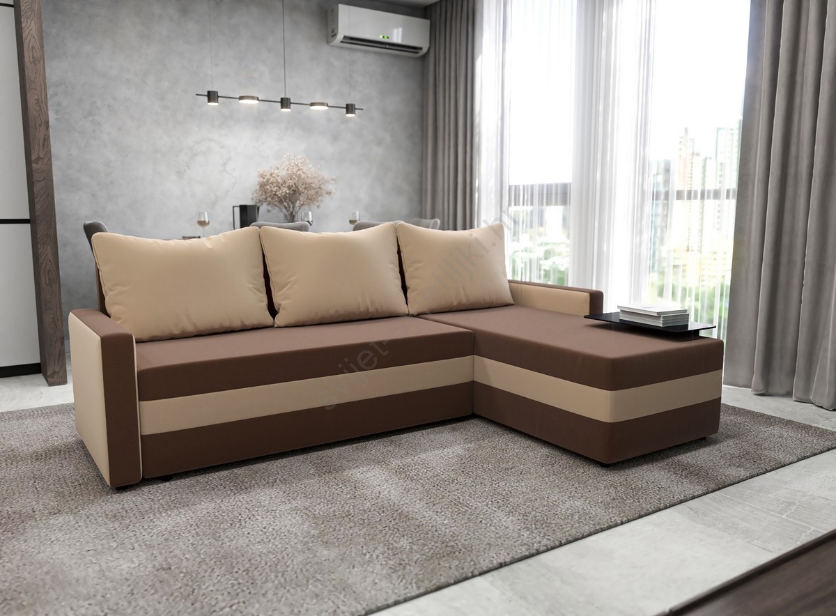 • Tapecirana univerzalna razvlačna kutna garnitura u obliku slova L BRISTOL smeđa/bež