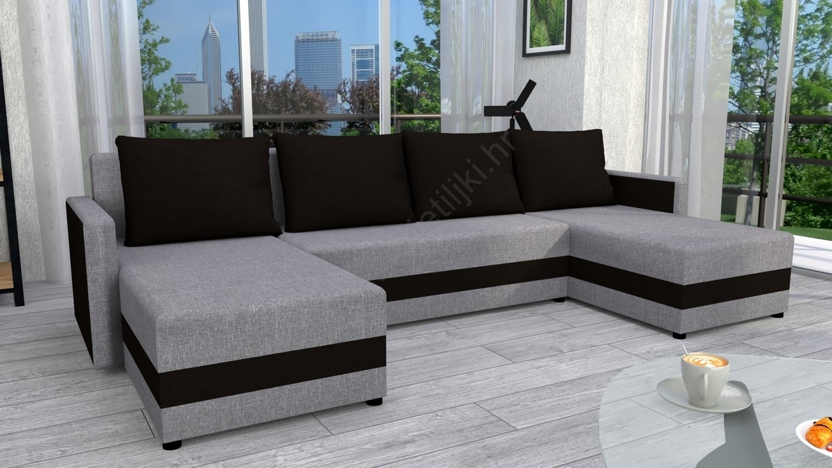 • Tapecirana univerzalna razvlačna kutna garnitura BRISTOL, siva/crna