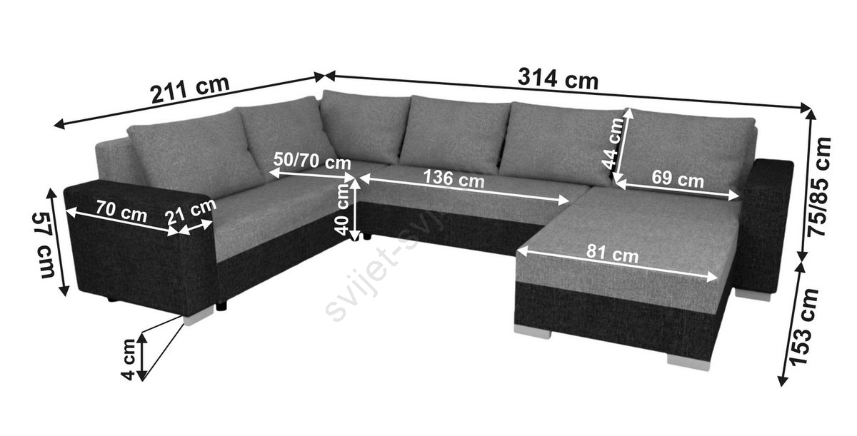 • Namještaj je opremljen razvlačnim ležištem, koje osigurava udoban san, kao i praktičnim spremištem za posteljinu i dodatke.