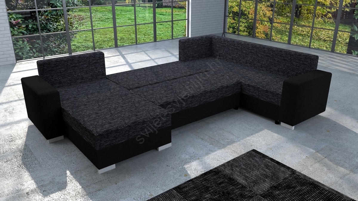 • Tapecirana univerzalna razvlačna sjedeća garnitura u obliku slova U YORK siva/crna