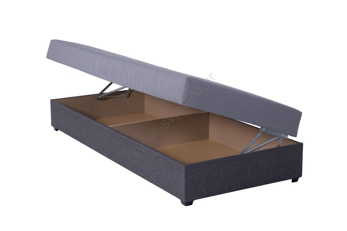 Tapecirani ležaj s spremištem JACOB XL nosivost 130 kg 90x200 cm sivi