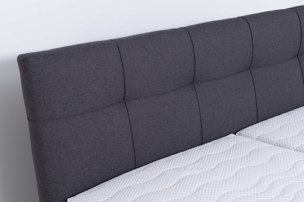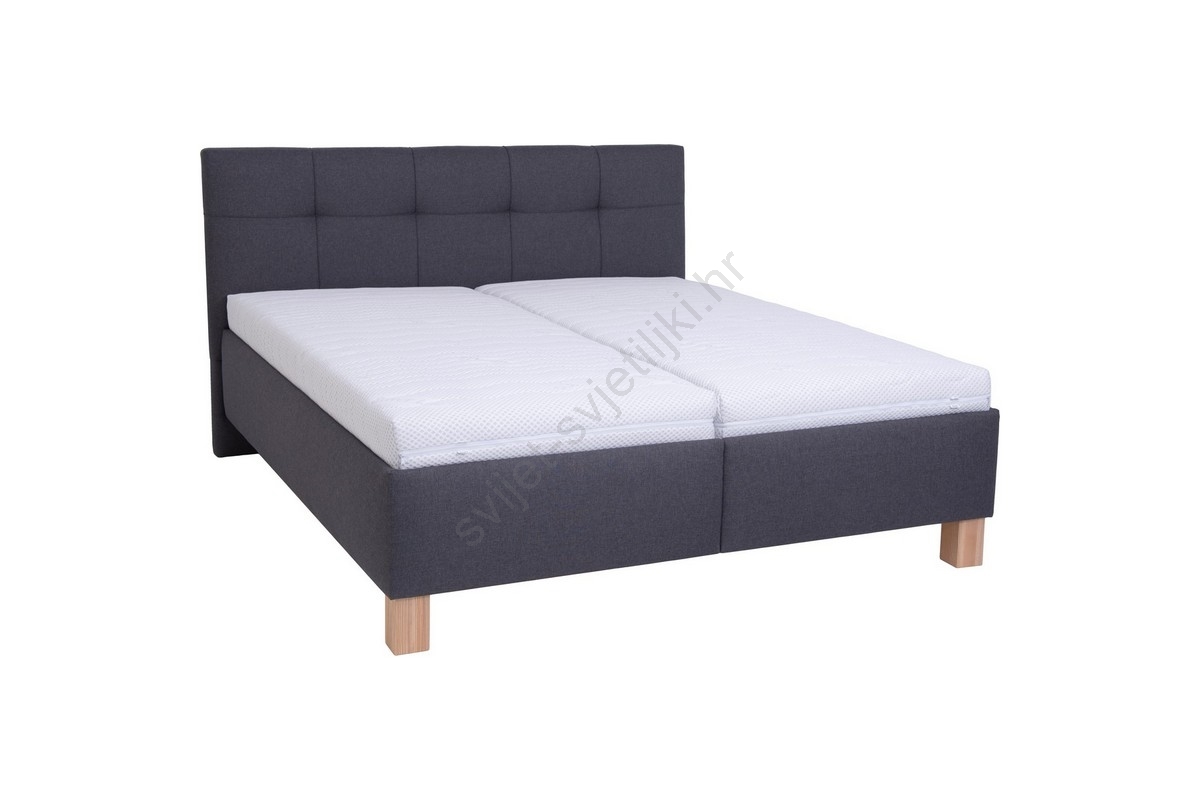 • Tapecirani bračni krevet s odvojenim madracima ponosno prikazuje detaljno obrađeno, elegantno prošiveno uzglavlje.
