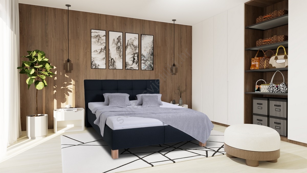• Tapecirani bračni krevet s odvojenim madracima krasi detaljno obrađeno, elegantno štepano uzglavlje.