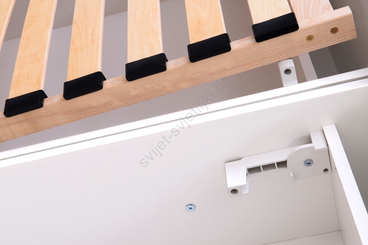 • Krevet je opremljen prostranim prostorom za pohranu s ventilacijskim rešetkama za odlaganje posteljine ili sezonskih stvari.